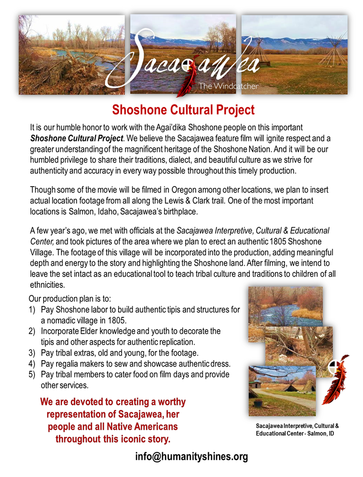 With Humanity Shines on my mind, the Shoshone people, the protection of cultures, traditions and languages, our connection to one another and our unique heritages worldwide, I was reminded again that Sacajawea’s life was destined to shine a light and show a way to impact the world with the stories that ignite change – beginning with hers.