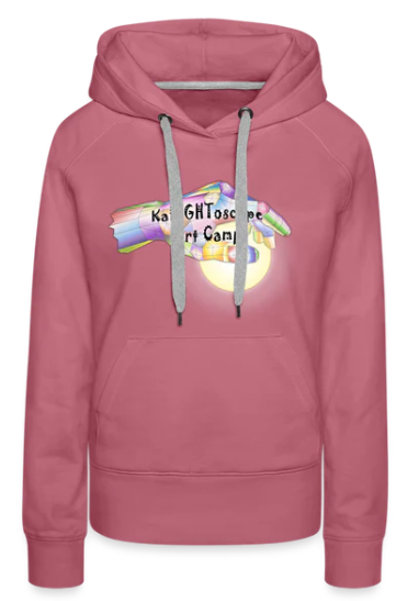 We offer great logo items including T-shirts, hats, duffle bags, mugs, sweatshirts and more! And we have “Swag” for all of our amazing project logos, too. Check out the KaLIGHToscope Art Camp logo on the black hat in the pictures below!